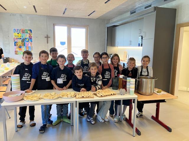 Jause von Astrid Falkner 14. Februar 2025 Bildergalerie Die Schüler der 3. und 4. Stufe bereiteten mit Mama Julia eine besondere Jause für alle Kinder zu.