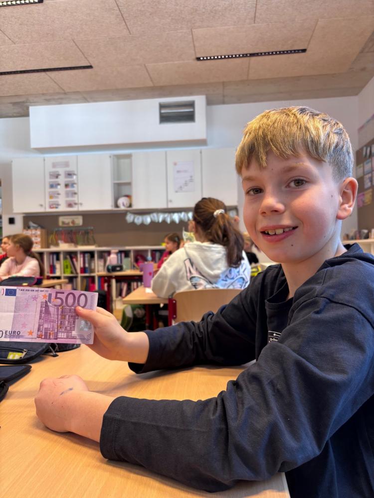 Kürzlich durften wir die Sparkasse bei uns an der Schule begrüßen. Die Kinder erhielten einen spannenden Einblick in die Welt des Geldes und lernten unter anderem die Sicherheitsmerkmale von Euro-Scheinen und Münzen kennen. Auch andere Währungen wurden vorgestellt und das Thema Sparen kindgerecht erklärt. Zum Abschluss sorgte ein gemeinsames Spiel für viel Freude und Begeisterung.